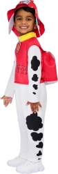 Adorabile costume per bambini PAW PATROL Marshall per piccoli eroi di 2–3 anni. Tuta monopezzo con pois da dalmata, gilet da pompiere rosso, cappellino con orecchie e pratico zainetto trasformano il bambino nel cucciolo soccorritore preferito. Ideale per carnevale, Halloween, feste a tema e il gioco di ruolo quotidiano.