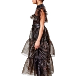 Le maniche lunghe, l’alto collo alla coreana e la gonna multistrato riccamente arricciata creano un effetto scenico che risalta a ogni ballo o festa. Il costume è una scelta perfetta per i fan della serie WEDNESDAY e per chi ama lo stile misterioso, elegante e gotico.