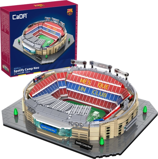 Il modello dettagliato dello stadio SPOTIFY CAMP NOU di CaDA offre tribune colorate autentiche con la scritta “Més que un club”, torri faro, facciata curata e campo verde. Con la licenza FC BARCELONA potrai apprezzare dettagli precisi e mattoncini di qualità compatibili con altri set.