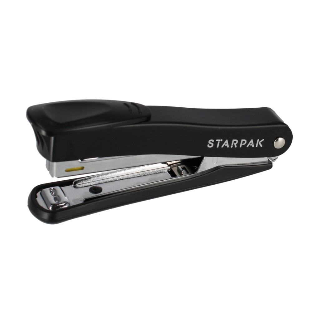 Questa cucitrice nera universale è un'ottima scelta per l'uso quotidiano. Grazie alle dimensioni compatte, entra facilmente nello zaino scolastico, nel cassetto o sulla scrivania. La compatibilità con i punti n. 246–266 garantisce flessibilità e facile ricarica.