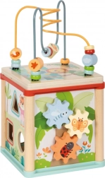 Il giocattolo sostiene lo sviluppo della motricità fine, della coordinazione mano-occhio, del pensiero logico e della pazienza. I bambini esercitano il riconoscimento di forme e colori, la risoluzione di semplici problemi e imparano a maneggiare diversi meccanismi: dagli ingranaggi alle piste scorrevoli fino ai blocchetti girevoli con animaletti.