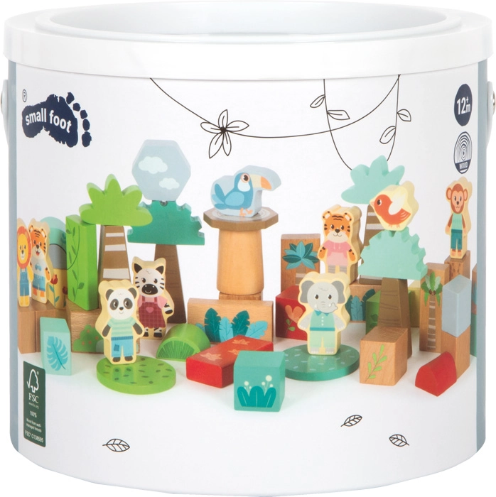 Questo magico set di costruzioni porta nella cameretta il mondo della giungla, ricco di animaletti e scenari fantasiosi. Troverete blocchi di varie forme e dimensioni, pezzi stampati con foglie e piante e simpatiche figurine come tigre, panda, scimmietta e uccellini. I bambini possono costruire torri, ponti e interi paesaggi sviluppando la fantasia e raccontando le proprie storie.