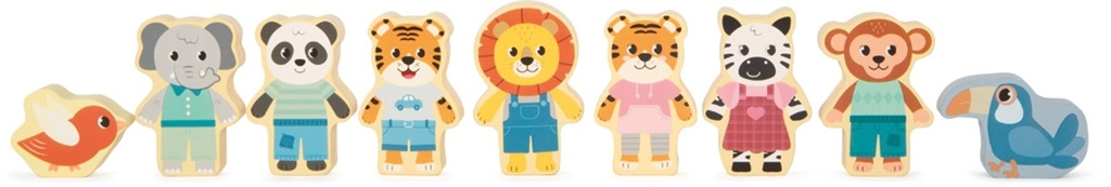 Include adorabili figurine di animali – tigre, panda, scimmietta, uccellino e altri – che ispirano il racconto di storie e il gioco libero.