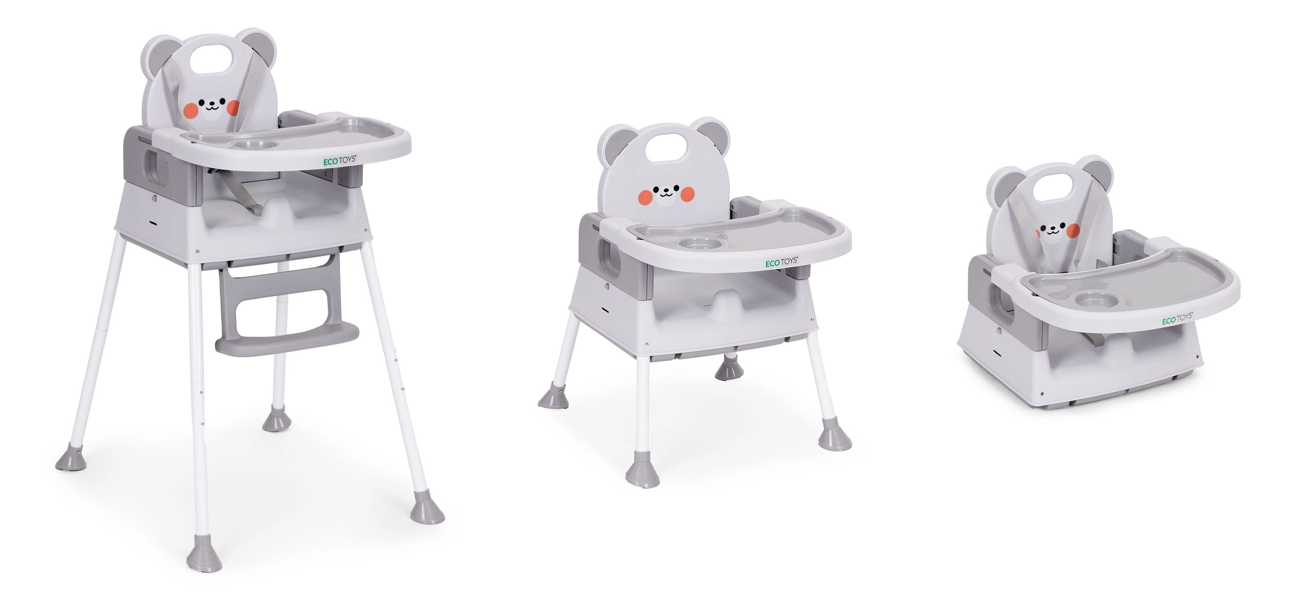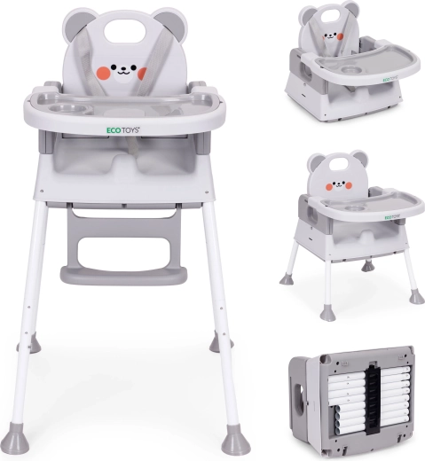 Questo seggiolone multifunzionale 3 in 1 permette ai bambini di mangiare insieme alla famiglia risparmiando spazio. Grazie alla facile riconfigurazione, può essere usato come sedia alta, poltroncina bassa o rialzo per sedia da pranzo – ideale in cucina, in spazi ridotti e in viaggio.