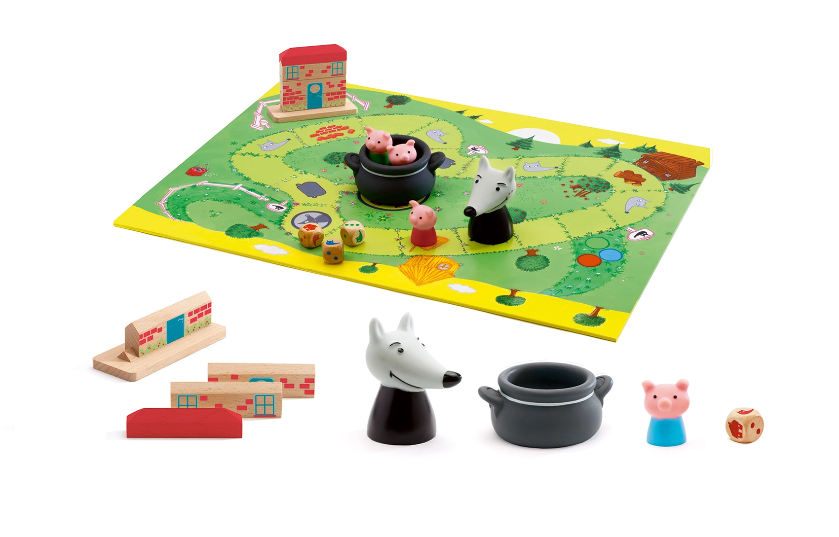 Divertente gioco cooperativo per bambini, in cui salvate insieme i tre porcellini dal lupo cattivo. Sviluppa collaborazione di squadra, pianificazione e prontezza. Regole semplici, storia avvincente e splendida realizzazione DJECO garantiscono un ottimo divertimento in famiglia.