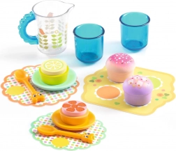 Tazzine, teiera, piattini e cucchiaini in colori vivaci invitano al gioco imitativo, a versare e servire le bontà.