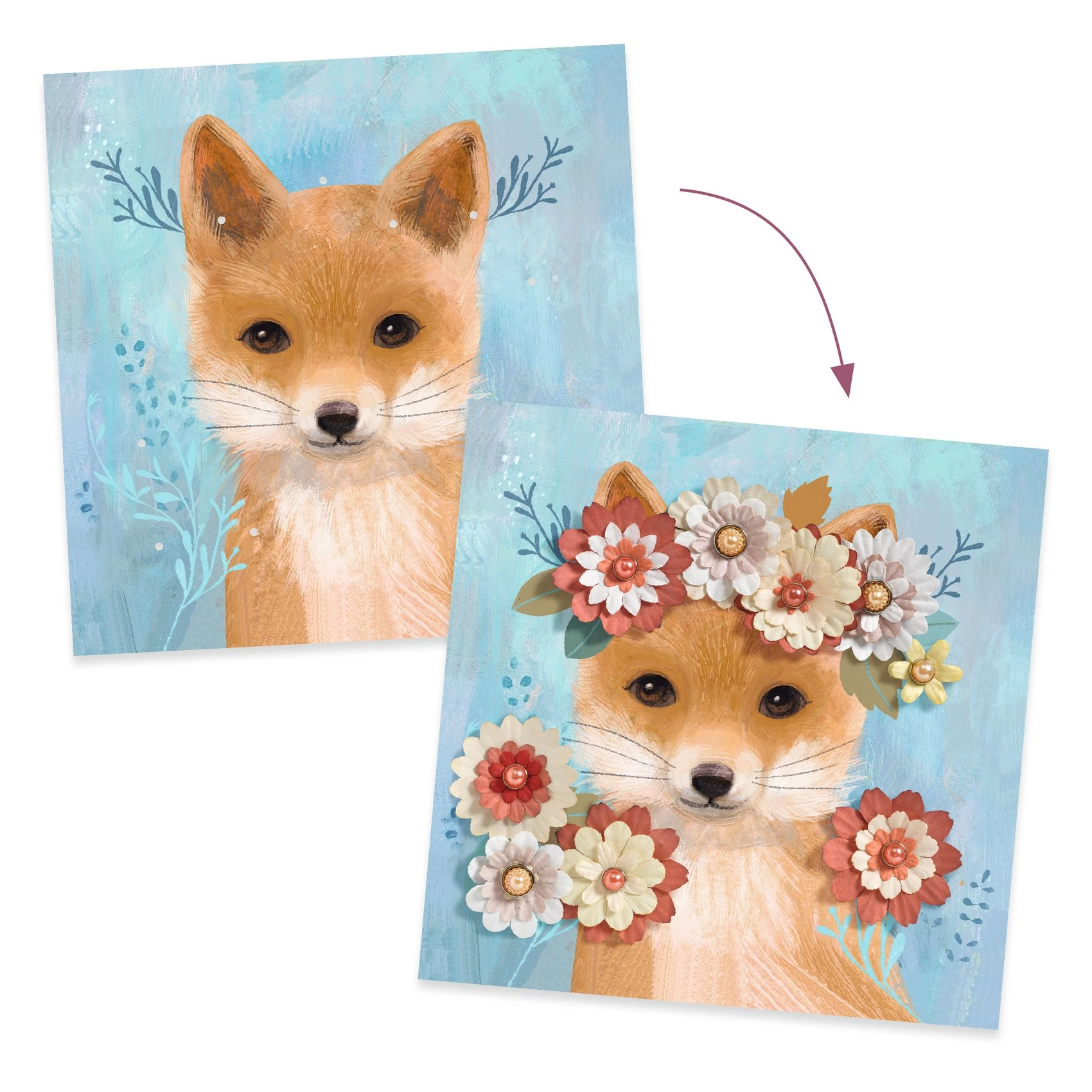 Scopri il set creativo per bambini di DJECO con cui realizzare quattro incantevoli immagini di animaletti decorate con corone floreali. Grazie ai petali di carta e agli elementi di fissaggio madreperlati, i bambini sviluppano motricità fine, creatività e senso per colori e composizione. Ideale come regalo e per creare insieme ai genitori.