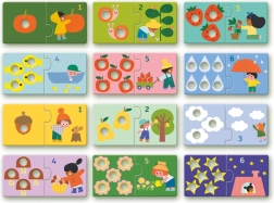 Djeco Duo Puzzle Primi numeri è un set educativo in cui i bambini abbinano le immagini alla cifra corrispondente. Grazie alle illustrazioni semplici e colorate, i bambini comprendono rapidamente la relazione tra il numero di oggetti e il numero che li indica. Un'ottima scelta per i prescolari e per i primi passi nel mondo dei numeri.