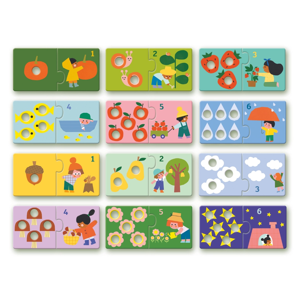 Insegna ai bambini i numeri in modo giocoso con il duo puzzle Primi numeri di Djeco. Le coppie di tessere si collegano in base alla quantità e alla cifra, favorendo il pensiero logico, la motricità fine e la prima alfabetizzazione matematica. Ideale per un primo approccio ai numeri in modo divertente e chiaro.