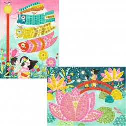 Questo divertente set a mosaico è ispirato a motivi giapponesi, dai colorati girandoloni a forma di carpa alle serene scenografie con loti. I bambini abbinano semplicemente i pezzi autoadesivi in base a numeri e forme, creando immagini suggestive e scintillanti. Le opere finite sono perfette come decorazione per la cameretta.