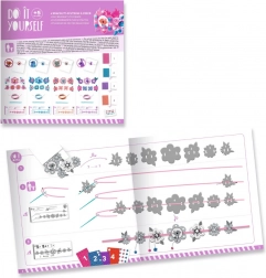 Sono incluse istruzioni illustrate passo-passo che guidano chiaramente l'intero processo – dalla scelta dei pezzi all'infilatura e alla sovrapposizione delle decorazioni. Il risultato sono braccialetti resistenti, leggeri e piacevoli, che conquisteranno i bambini per colori, texture e brillantezza.