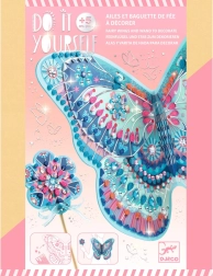 Questo magico set fai-da-te contiene tutto il necessario per creare splendide ali da farfalla e una bacchetta floreale con effetti metallici. Le aree e le sagome prestampate mostrano chiaramente dove incollare gemme, paillettes e glitter, così il risultato è sempre riuscito.