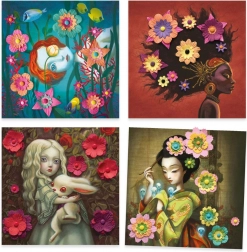 Il set include quattro cartoncini quadrati con ritratti e una scena sottomarina – ideali per decorare la stanza o come regalo.
