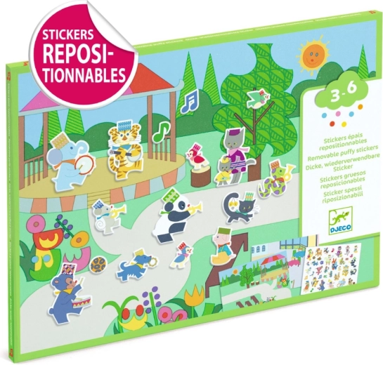 Questo divertente set creativo del marchio DJECO porta ai bambini la gioia del fai-da-te. Con diversi adesivi, i bambini compongono originali personaggi di musicisti e creano la propria parata piena di colori e musica. L’attività è ideale per momenti tranquilli a casa e in viaggio.