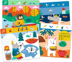 Pezzi colorati e spessi e tabelloni solidi favoriscono la motricità fine e una presa sicura. Ideali per le prime attività di logica, di composizione e di abbinamento delle forme.