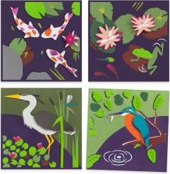 Questo set creativo del marchio Djeco offre ai bambini la possibilità di realizzare passo dopo passo quattro originali immagini 3D a tema acquatico. La combinazione di strati, colori e texture dona alle creazioni finali profondità e un suggestivo effetto tridimensionale che i bambini adoreranno.