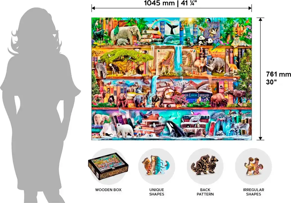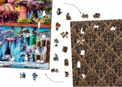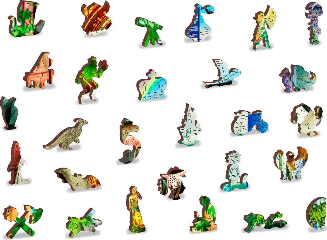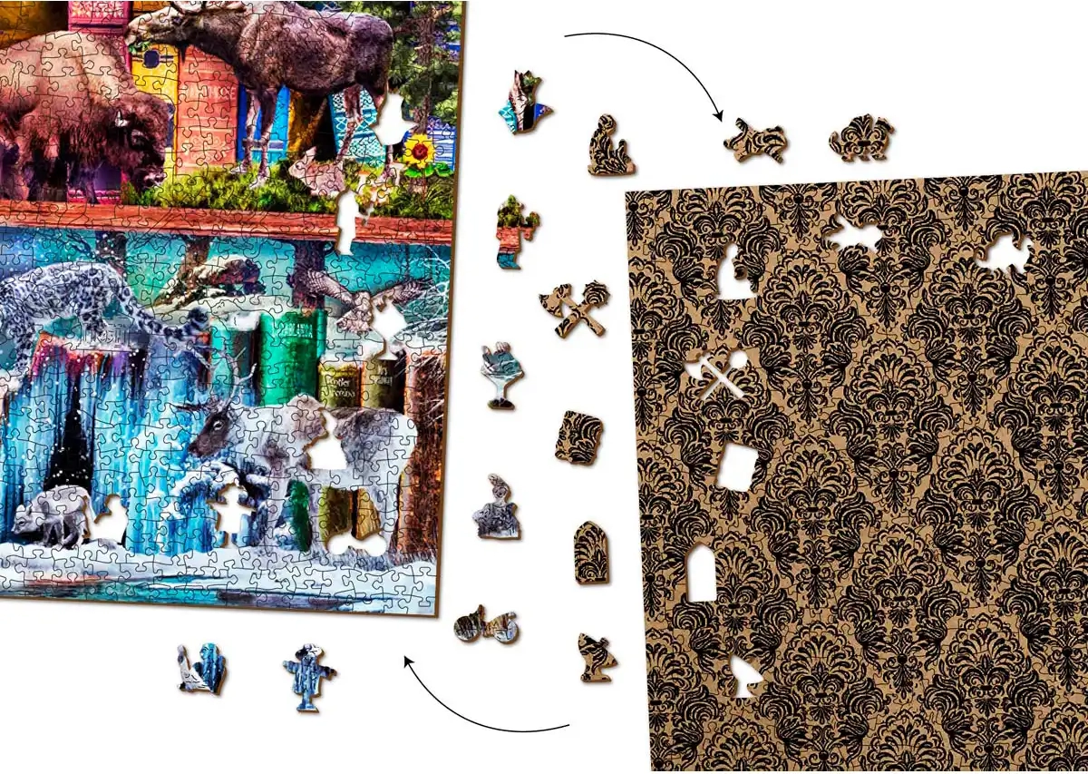 Entra in un mondo di dettagli e colori con il motivo Meraviglioso regno degli animali. Il puzzle in legno in robusto pannello HDF (3–4 mm) colpisce non solo per la splendida illustrazione, ma anche per i pezzi whimsy sapientemente progettati in linea con il tema: animali, oggetti e costruzioni iconiche. Alcuni possono essere montati come piccole figurine per un effetto ancora più scenografico.