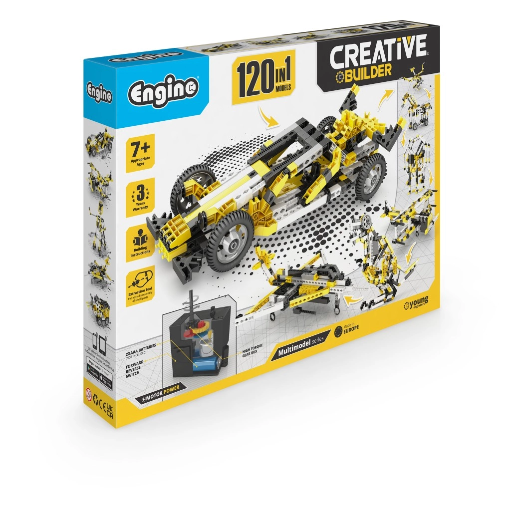 Scopri possibilità illimitate con il kit creativo Engino Creative Builder, che permette di assemblare fino a 120 modelli in 1. Grazie al motorino con interruttore di direzione, alle istruzioni 3D nell’app kidCAD e alla compatibilità con altri set ENGINO, sviluppa il pensiero logico, la creatività e le competenze tecniche dei bambini dai 7 anni in su.