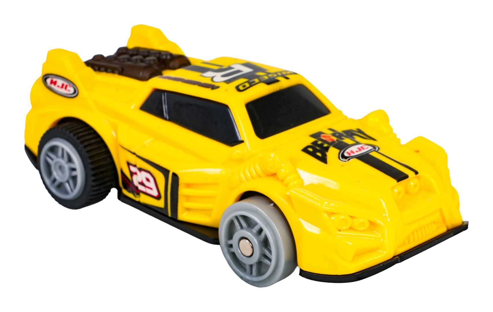 Compatta vettura gialla con scorrimento fluido delle ruote e luce posteriore, amplifica il divertimento durante la guida notturna. Alimentazione 2× AAA (non incluse).
