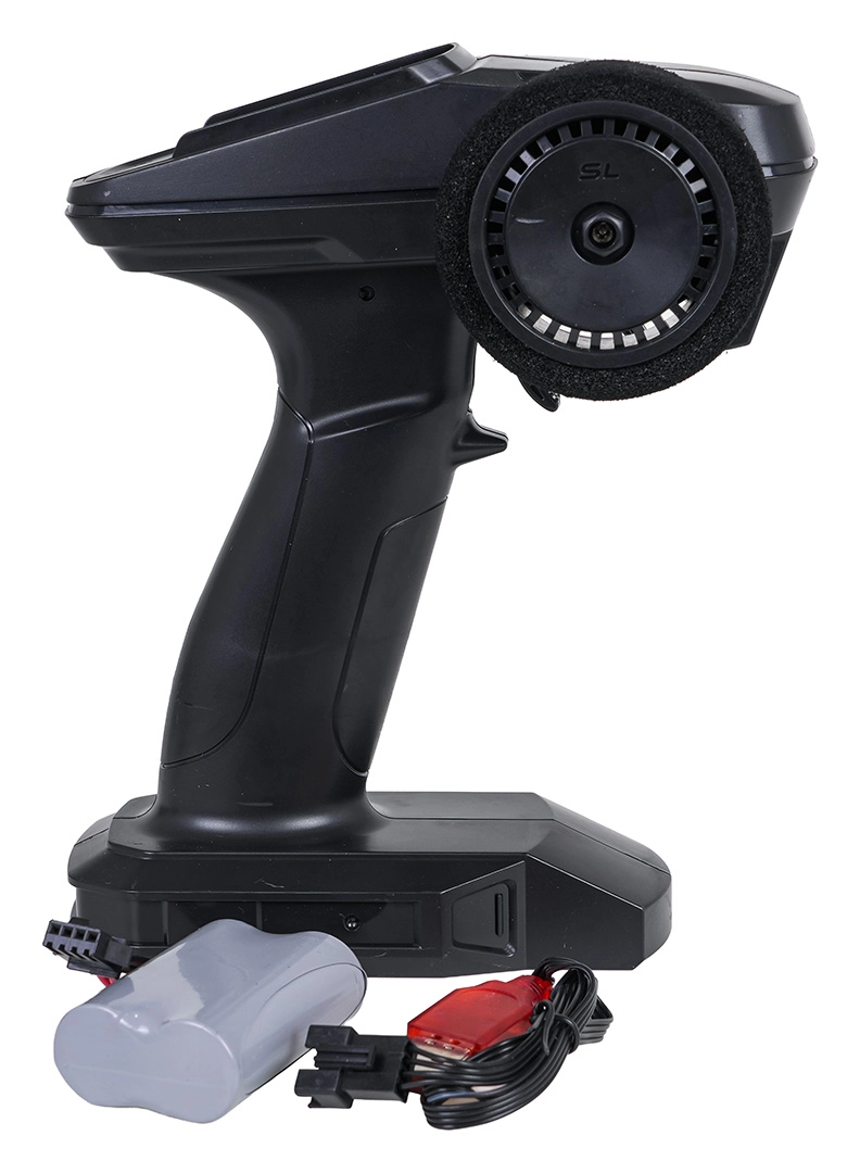 Il radiocomando a pistola a 2,4 GHz offre un controllo fluido senza interferenze, la possibilità di far correre più modelli contemporaneamente e una regolazione precisa della direzione.