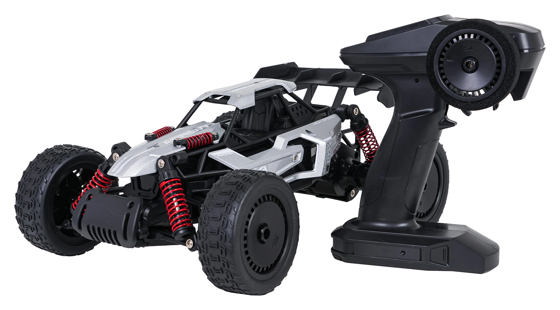 La buggy RC ARROW è un modello fuoristrada rapido e robusto, progettato per il divertimento su strada e off-road. La carrozzeria in metallo e la struttura antiurto proteggono il veicolo in terreni impegnativi, mentre la trazione 4x4 e le sospensioni ammortizzate garantiscono ottima trazione, stabilità e controllo fluido.