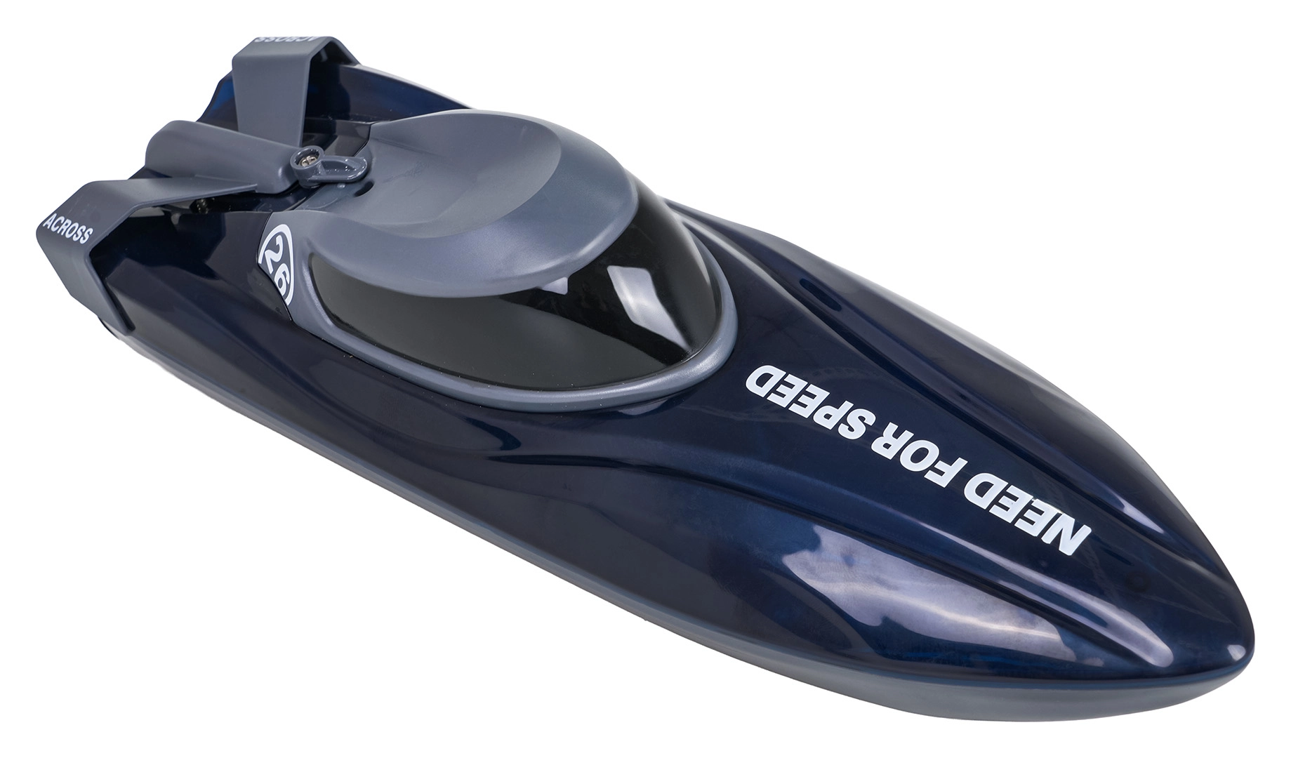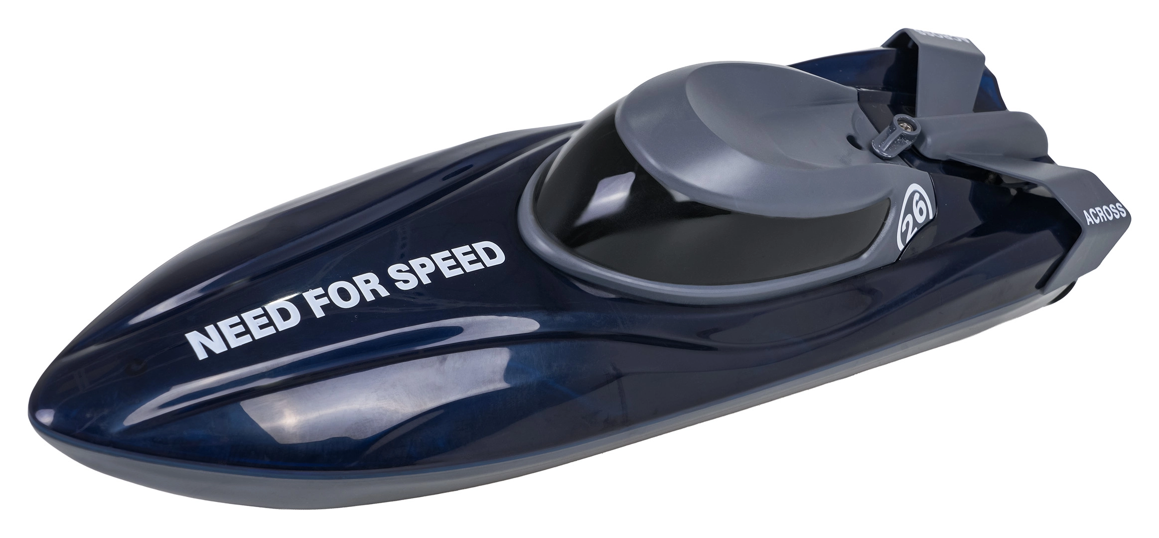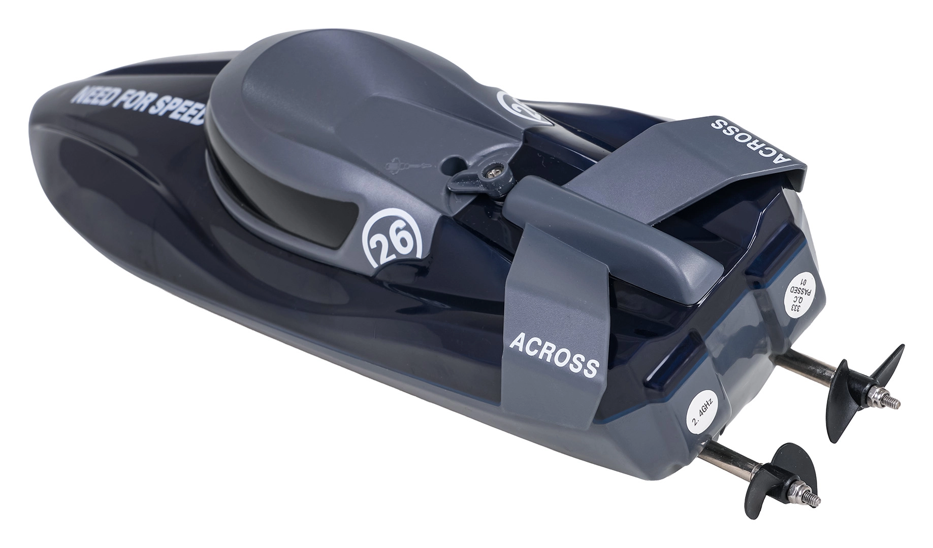 La stilosa barca RC blu porta guida dinamica ed effetti luminosi straordinari sulla superficie dell’acqua. Grazie allo scafo in ABS resistente e alla stabile connessione a 2,4 GHz, gestisce manovre precise in tutte le direzioni, incluse le rotazioni a 360°. Un interruttore di sicurezza attiva la barca solo quando è in acqua.