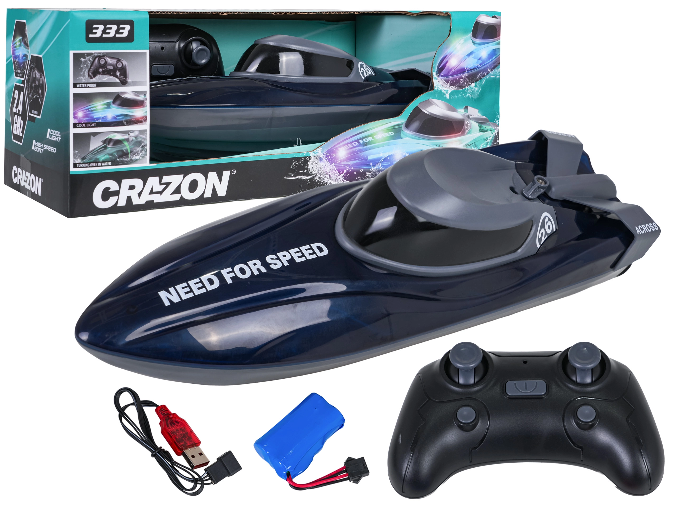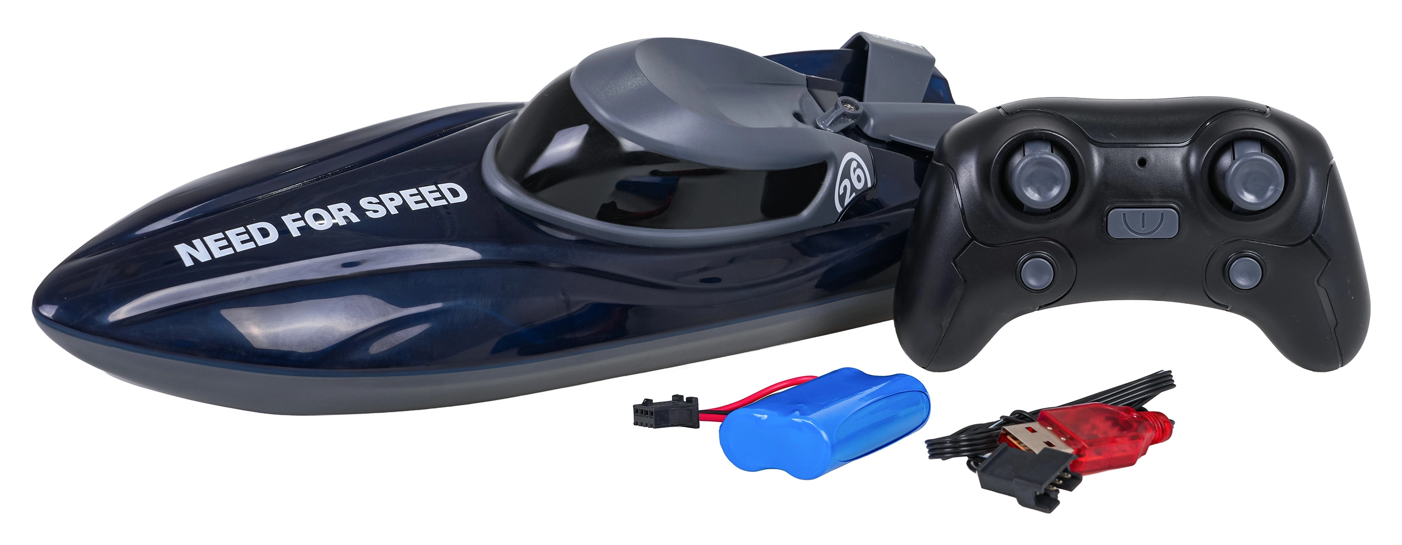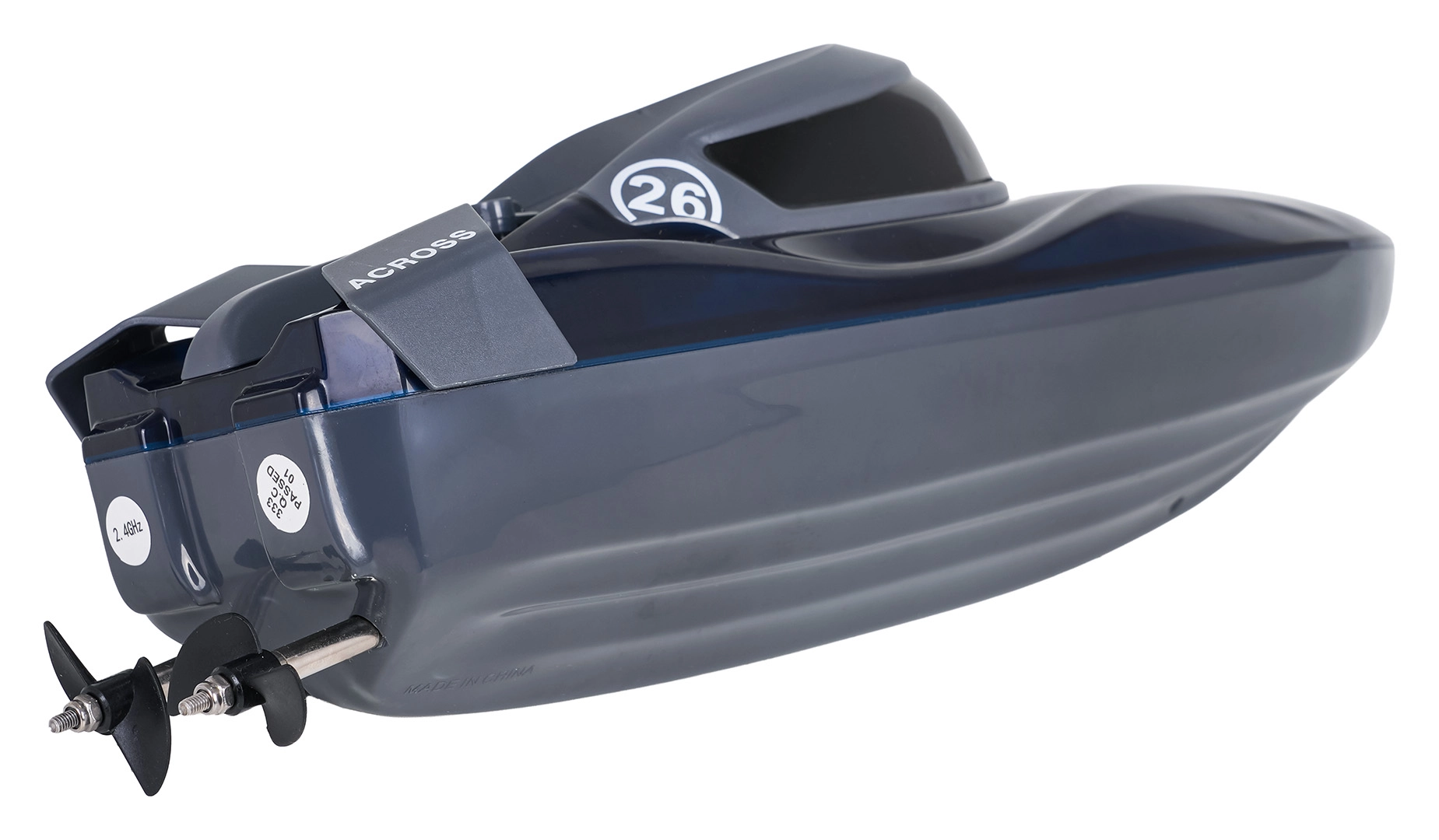 La stilosa barca RC blu porta guida dinamica ed effetti luminosi straordinari sulla superficie dell’acqua. Grazie allo scafo in ABS resistente e alla stabile connessione a 2,4 GHz, gestisce manovre precise in tutte le direzioni, incluse le rotazioni a 360°. Un interruttore di sicurezza attiva la barca solo quando è in acqua.