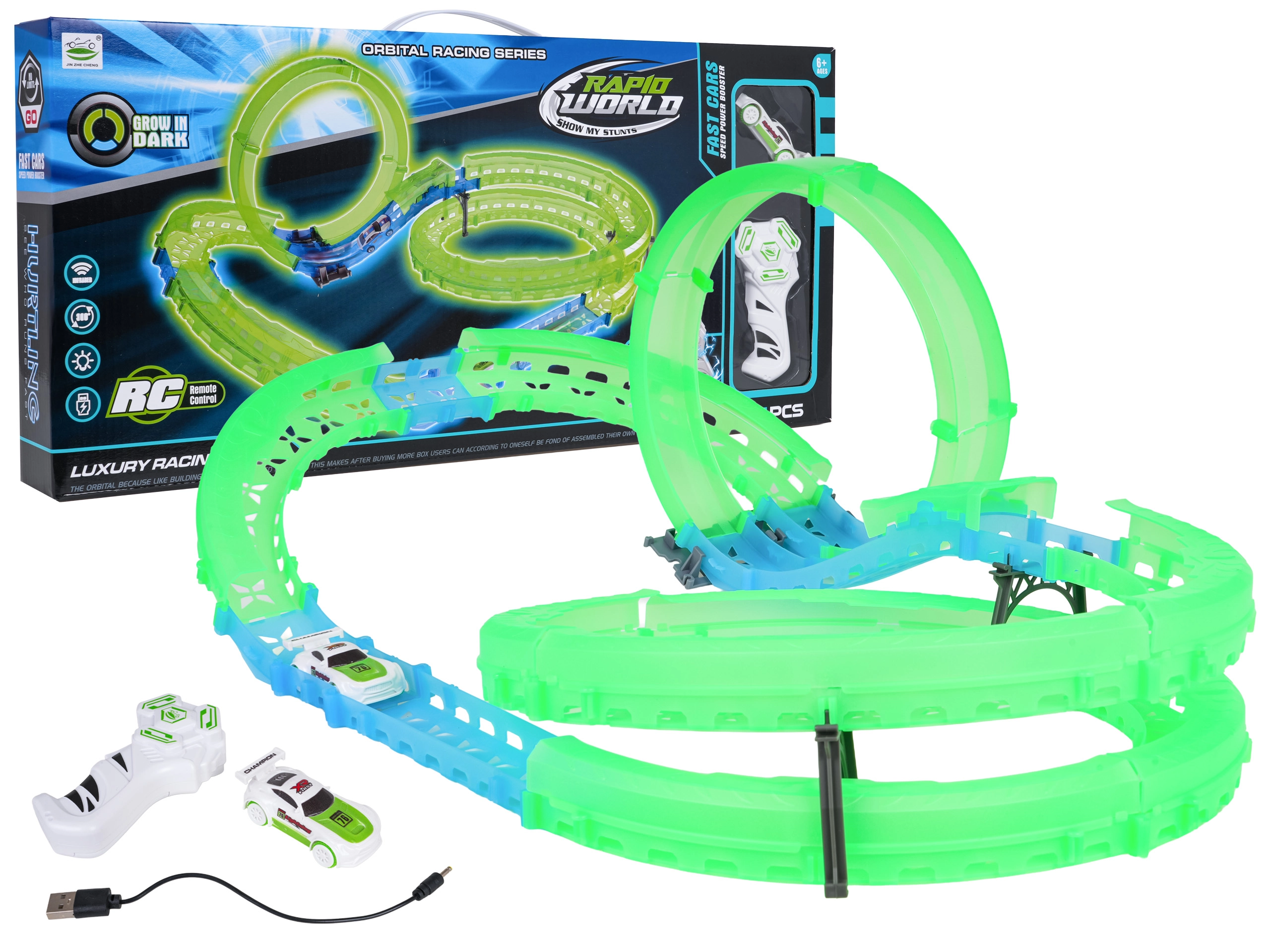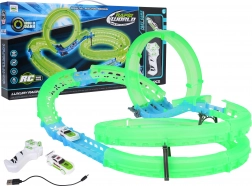 - Divertimento di giorno e di notte – la pista fluorescente brilla al buio, la macchinina LED illumina ogni giro.