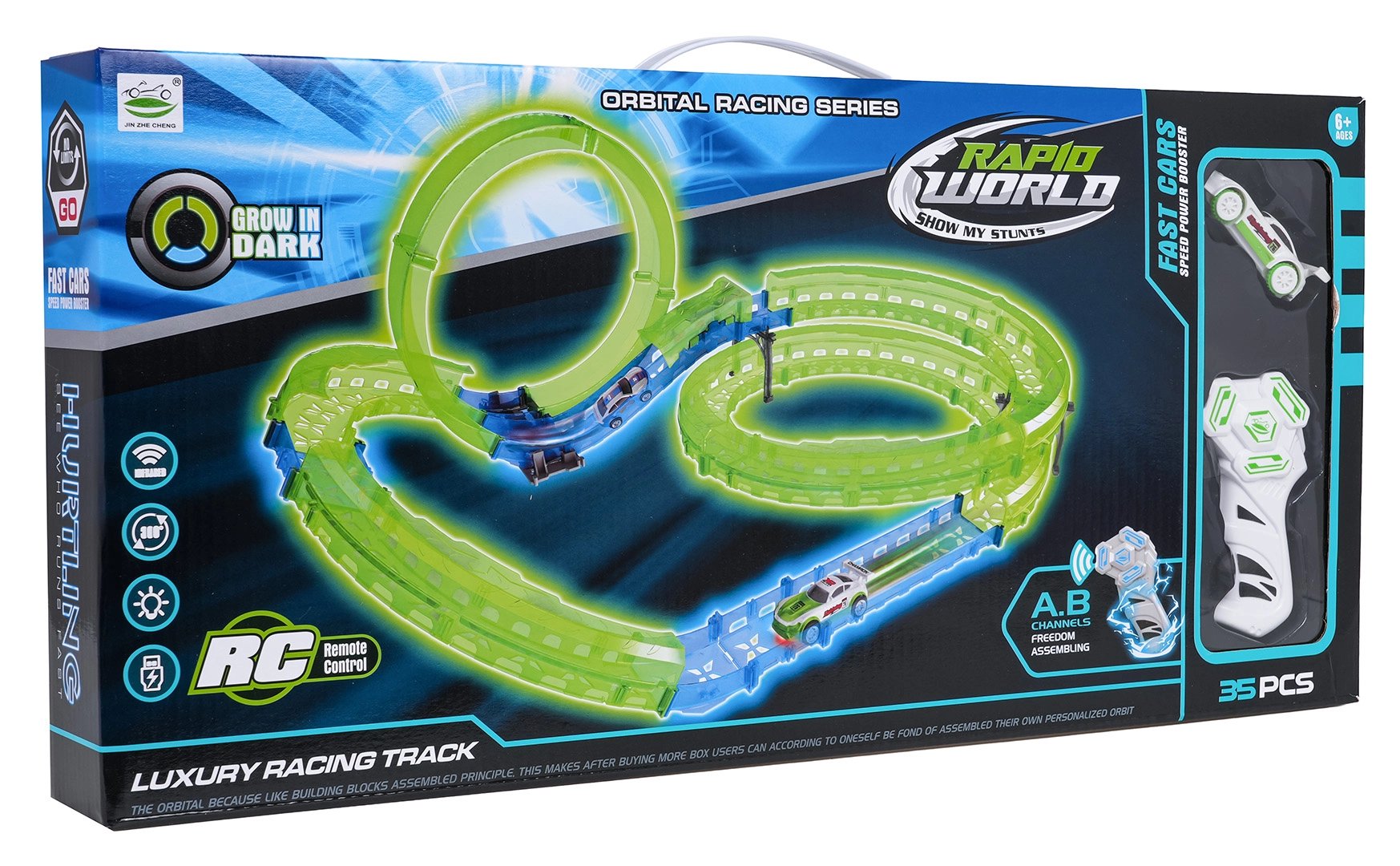 Dai il via alle gare in casa con la pista da corsa luminosa per bambini dai 6 anni. Il set include macchinina RC con illuminazione LED, pista fluorescente che brilla al buio e telecomando. La macchinina si ricarica tramite USB, il controller usa batterie AAA. Un divertimento fantastico che sviluppa coordinazione, immaginazione e motricità fine.