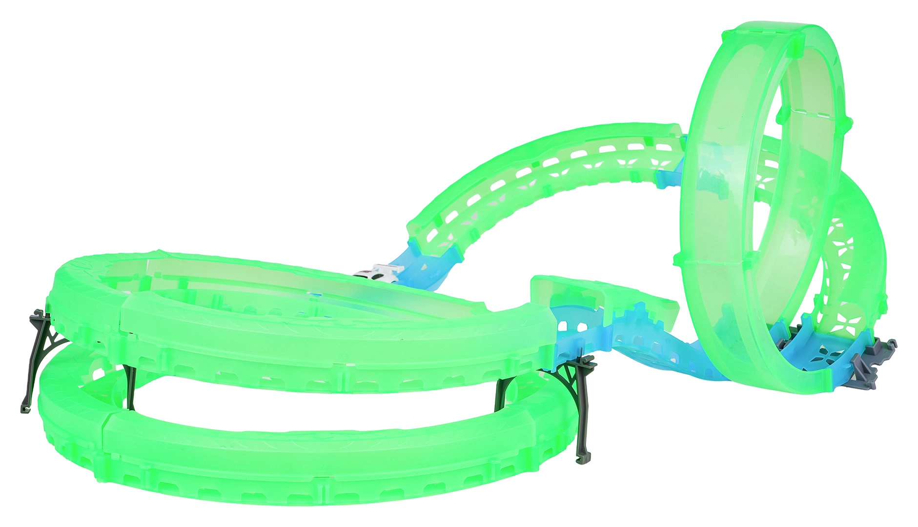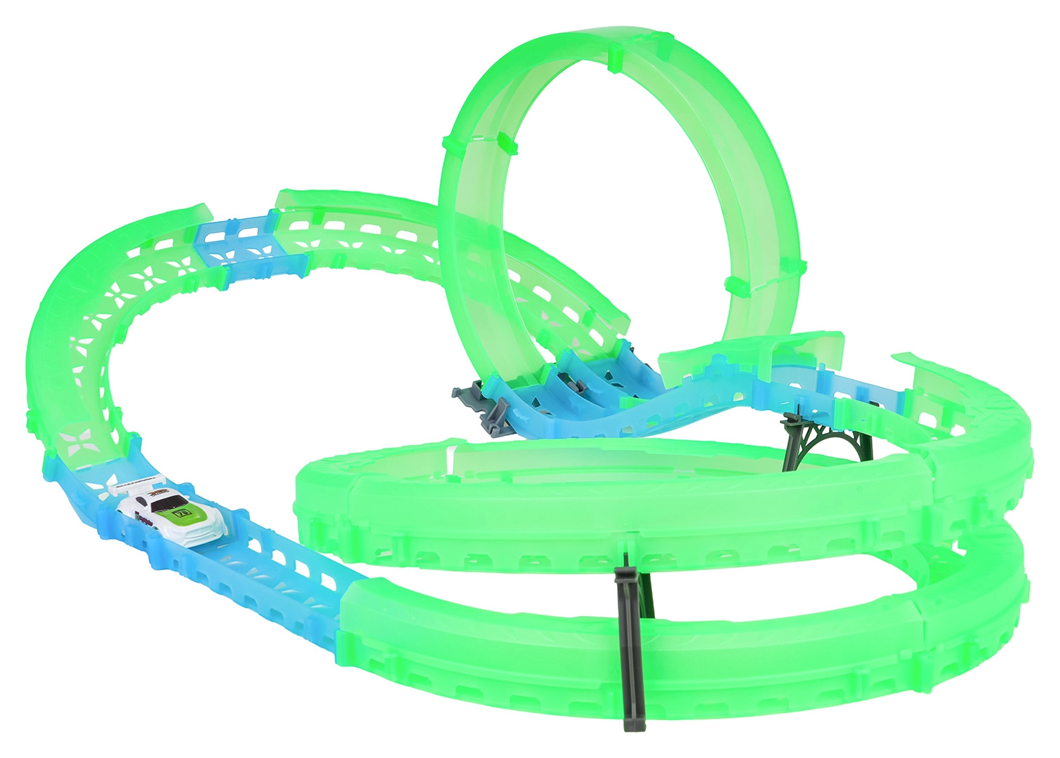 La compatta auto con illuminazione LED sfreccia tra curve e tratti sopraelevati della pista. Crea scie luminose e invoglia a nuovi tentativi.