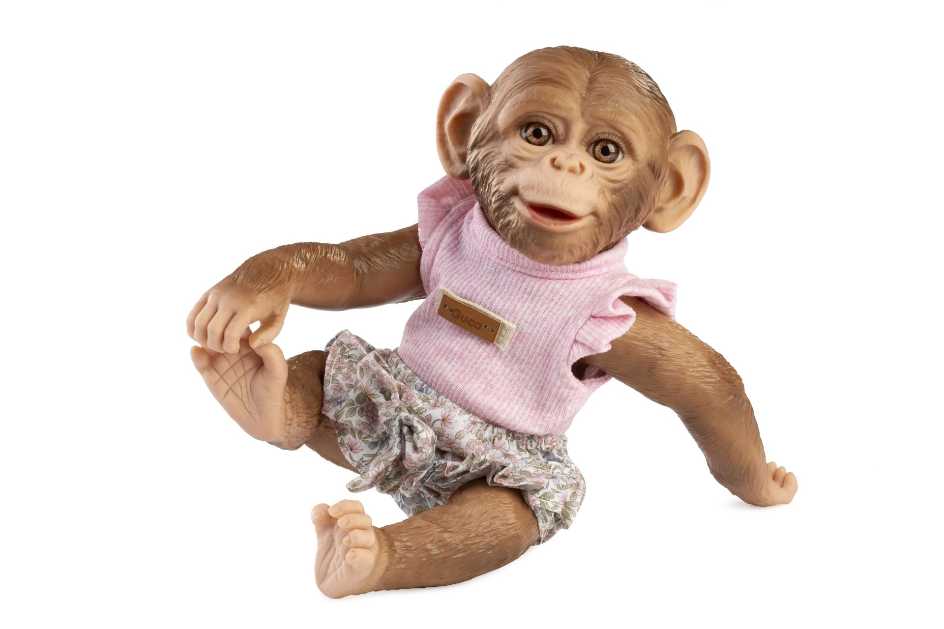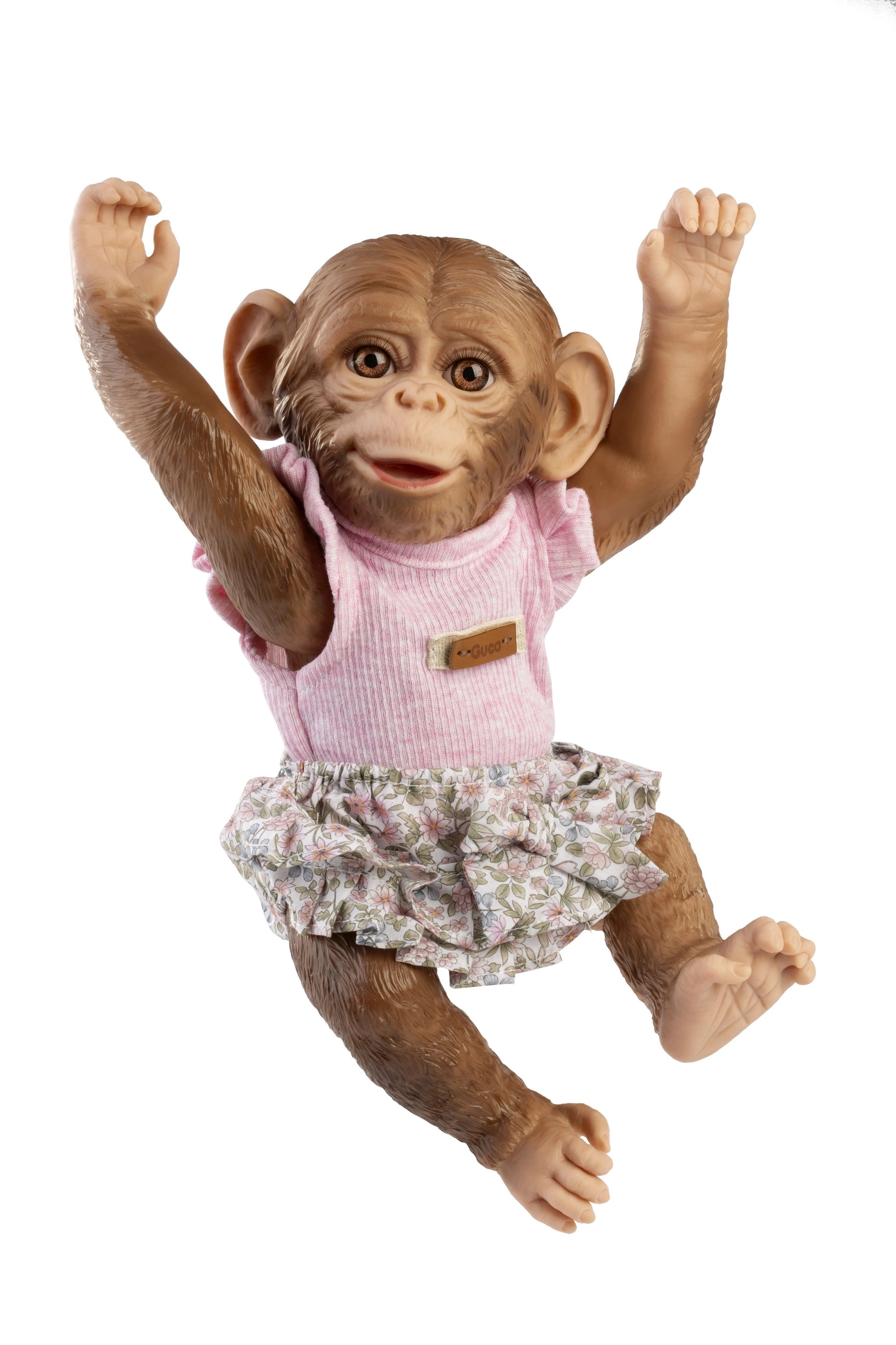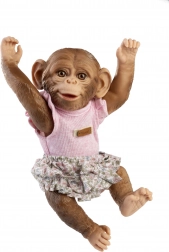 Dona nuova eleganza alla tua scimmietta bebè Reborn con questo delicato abitino taglia 32 cm. Il top rosa con raffinati volant e le mutandine floreali si abbinano alla perfezione e si indossano con facilità. Il pratico ciuccio con passante favorisce un gioco realistico e la cura del “bebè”.