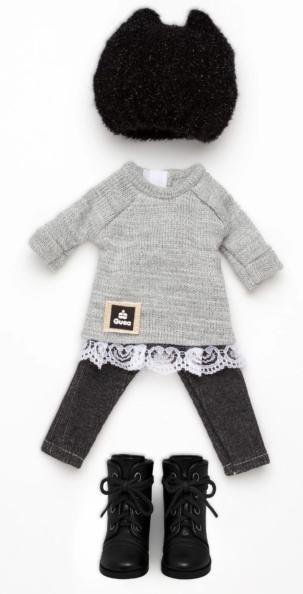 Tre capi coordinati completati da scarpette creano subito un look pronto per la bambola PENELOPE da 34 cm.