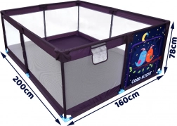 Questo grande box per bambini offre circa 3,2 m² di superficie per gattonare, giocare e riposare. La struttura con tubi e giunti resistenti è leggera ma molto stabile, le pareti e il fondo morbidi proteggono dagli urti e aumentano il comfort durante un uso prolungato. I lati in rete consentono ai genitori un controllo continuo e al bambino il contatto con l’ambiente, favorendo il senso di sicurezza.