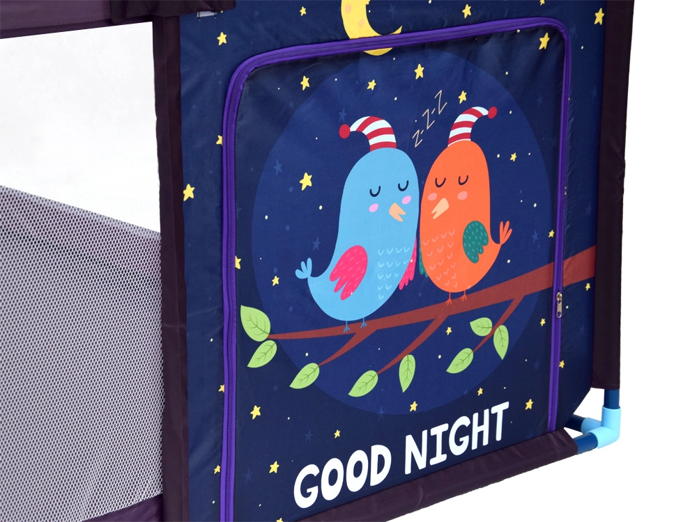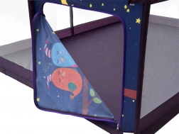 La pratica apertura con zip garantisce uscite sicure e controllate. Nelle pareti laterali troverete 2 piccole tasche per gli oggetti di piccole dimensioni. Il materiale è facile da pulire (lavaggio a mano), così manterrete il box sempre pulito senza sforzo. La finitura viola neutra con un motivo simpatico si adatta a ogni cameretta.