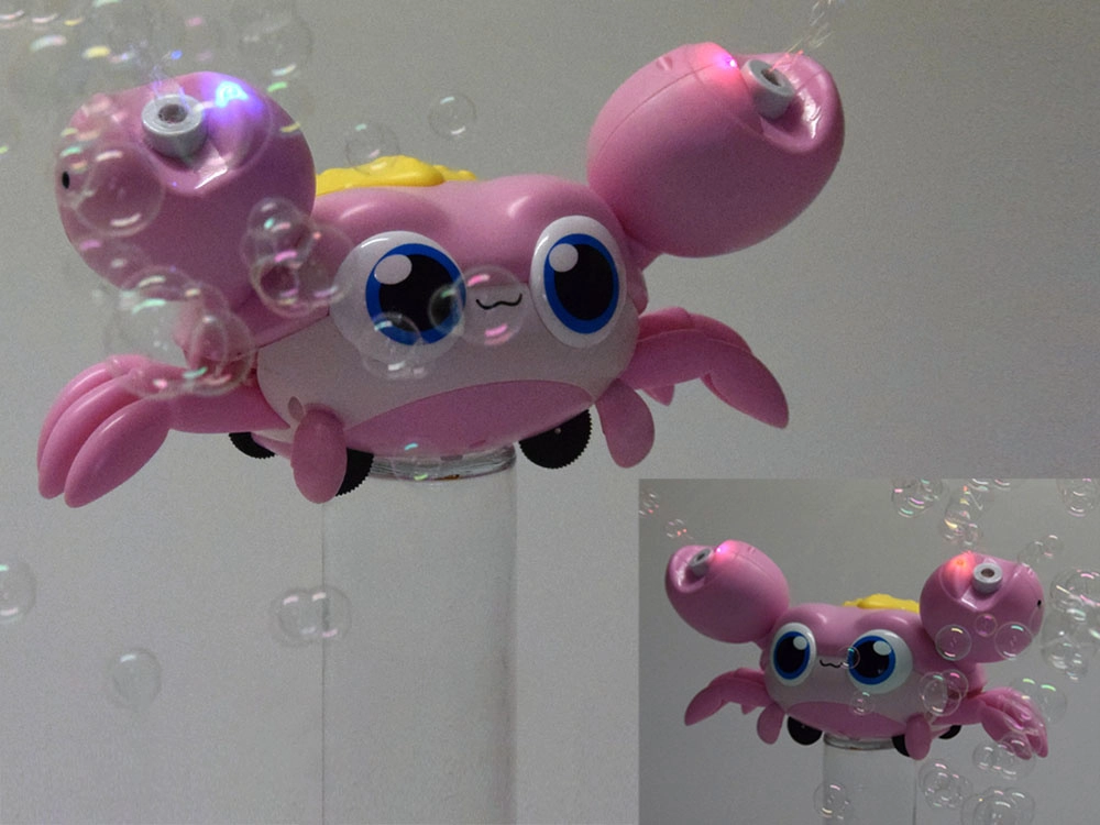 Il granchio si sposta su piccole ruote e dalle chele rilascia un flusso di delicate bolle: perfetto per giardino, balcone e feste per bambini.