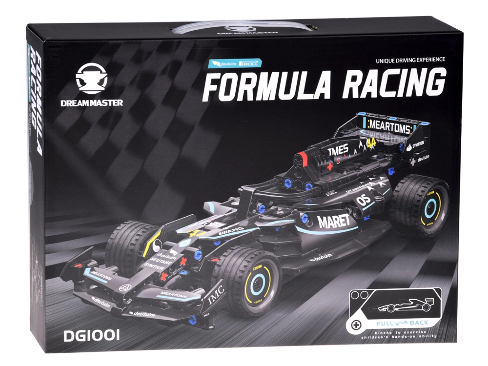 Questo set di costruzione tecnico dell’auto da corsa di FORMULA 1 conquisterà tutti gli amanti della velocità e del montaggio intelligente. Con i pezzi assemblerai un bolide dettagliato con alettoni aerodinamici, ruote a profilo ribassato e ricca grafica adesiva. Grazie al motore a retrocarica basta tirare il modello all’indietro su una superficie piana e rilasciare: l’auto partirà da sola in avanti.