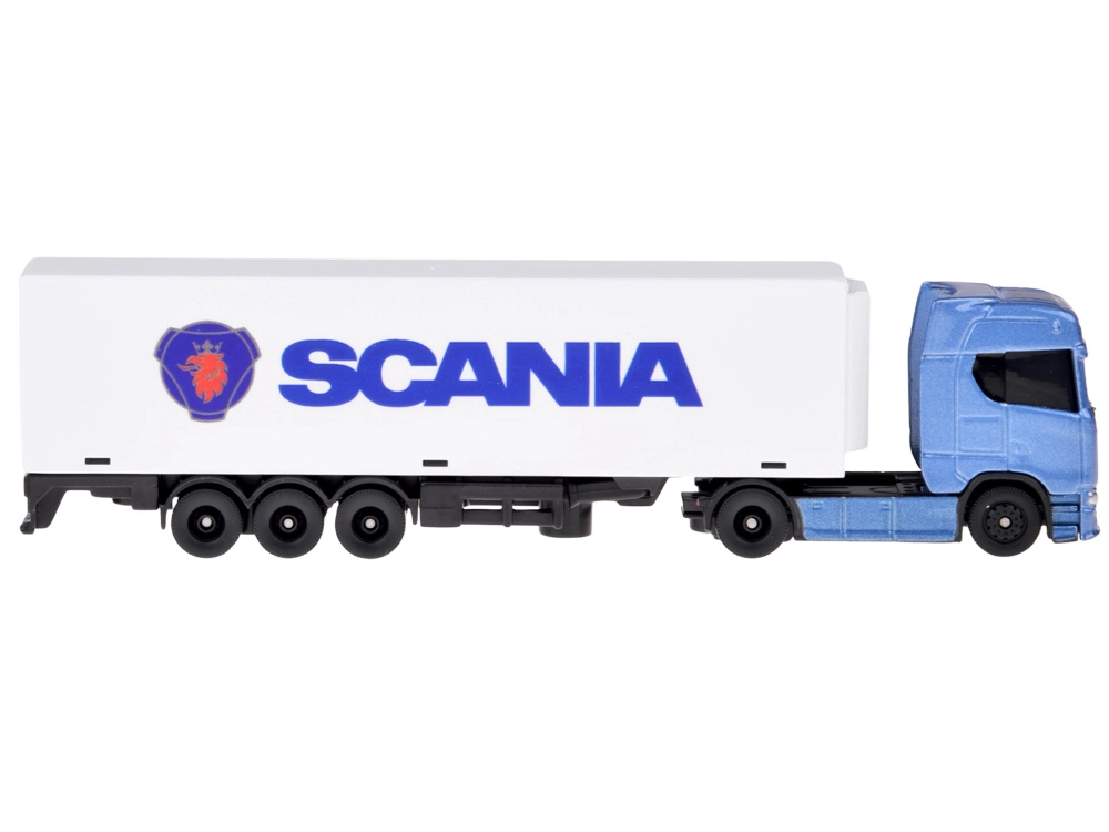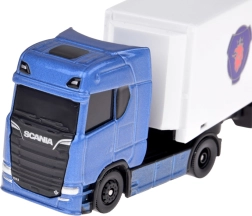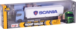 Scopri il modello rifinito con precisione Maisto Freight Haulers con cabina in metallo e dettagli realistici, dalla calandra fino all'emblema SCANIA sul semirimorchio bianco. La cabina blu e il semirimorchio box bianco con logo hanno un aspetto accattivante sia sullo scaffale sia sul pavimento della cameretta.