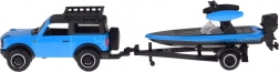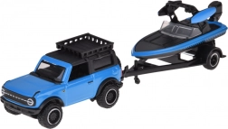 Scopri la combinazione vincente tra l’icona off-road e l’avventura sull’acqua: FORD Bronco 2021 in scala 1:64 traina un rimorchio con un elegante motoscafo. Il modello si distingue per la carrozzeria in metallo, le linee fedeli e i contrasti che ne esaltano l’aspetto autentico. Rimorchio e barca possono essere facilmente staccati per creare ancora più scenari di gioco.