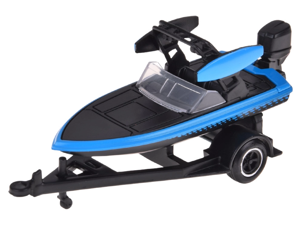 Grazie alla modellazione realistica, a dettagli come il gancio di traino, il portapacchi sul tetto e il motore fuoribordo della barca, il set appare credibile ed è ideale sia per il gioco sia per l’esposizione. La colorazione blu conferisce al modello un carattere moderno e dinamico.
