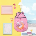 Questo sacco nanna rosa per bambola BABY born è progettato per sistemare la bambola a dormire in modo comodo e sicuro. Il tenero motivo del coniglietto che riposa sulla luna con la scritta “dream” e il bordo grigio a contrasto lo rendono un accessorio elegante per la cameretta.