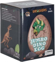 - 1× uovo in gesso con 12 figurine di dinosauri, 1× scalpello, 1× martelletto con coltellino, 1× pennellino, scheda informativa (EN), manuale (PL)