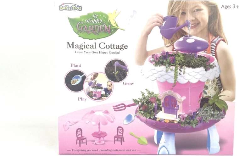 Nella confezione trovi tutto il necessario per iniziare subito a coltivare: vasi, sacchetti di terriccio, bustina di semi e serbatoio dell’acqua. Non mancano l’annaffiatoio, quattro attrezzi da giardinaggio per sviluppare la motricità fine e decorazioni che creano un’atmosfera accogliente. Effetti luminosi e musicali alimentati da batterie LR44 (incluse) aggiungono un tocco interattivo e stimolano la fantasia.