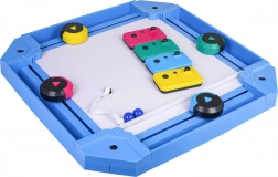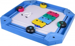 L’arena in plastica robusta con bordi rialzati mantiene la partita sotto controllo; i dischi colorati e i moduli a paletta aggiungono chiarezza e stile. Gli elementi di gioco sono alimentati da accumulatori da 3,7 V (inclusi), i controller utilizzano batterie 2× AA 1,5 V (non incluse). Ideale come regalo e ottima scelta per un divertimento attivo senza schermi.