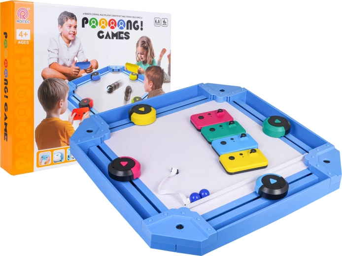 Avvia un torneo in casa! Il gioco d’azione da tavolo controllato tramite controller a 2,4 GHz offre sfide avvincenti per 2 o 4 giocatori. L’obiettivo è mirare con precisione, difendere con astuzia e non lasciare che la pallina cada nella tua porta. Grazie alle regole semplici e ai comandi intuitivi, sia bambini che adulti si divertono subito.
