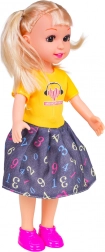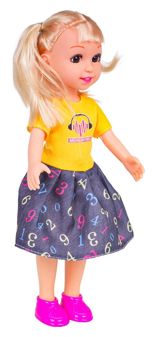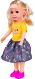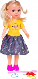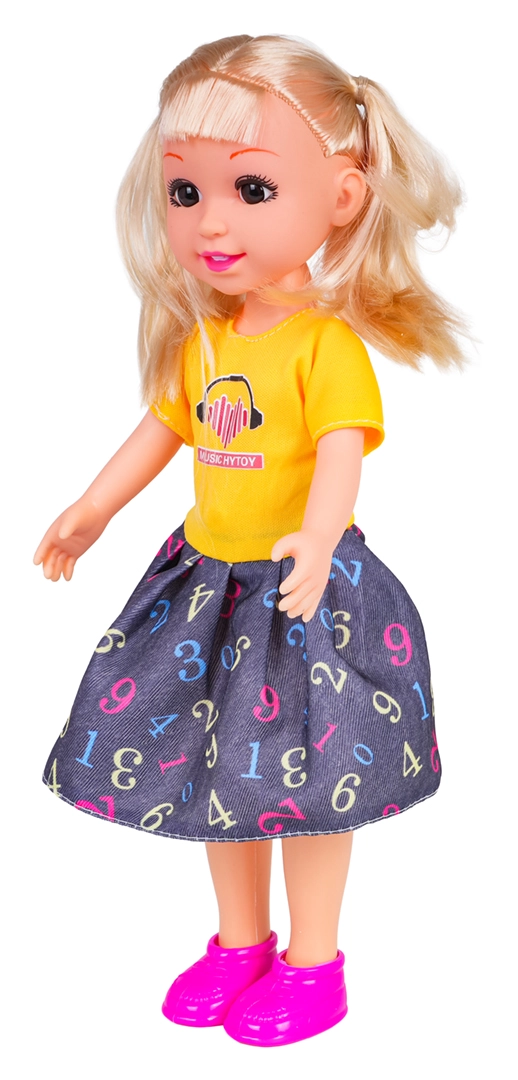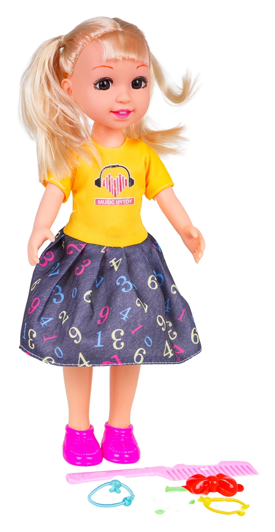 La dolce bambola Mandy farà felici i bambini dai 3 anni. Ha lunghi capelli biondi e un outfit alla moda, accompagnato da pettine, mollettine e elastici per le acconciature. Sul pancino ha un pulsante con effetti sonoriallegre melodie e domande della bambola. Le batterie 3× AG13 sono incluse nella confezione.