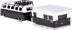 Elegante set da collezione in scala 1:64 che unisce l’iconico VOLKSWAGEN Van Samba a un realistico caravan da campeggio. Carrozzeria in metallo, lavorazione dettagliata e rimorchio sganciabile garantiscono un’ottima resa in vetrina e gioco divertente. Combinazione bianco‑nera, gancio di traino funzionante e dettagli fedeli lo rendono un regalo perfetto per collezionisti e amanti delle auto classiche.
