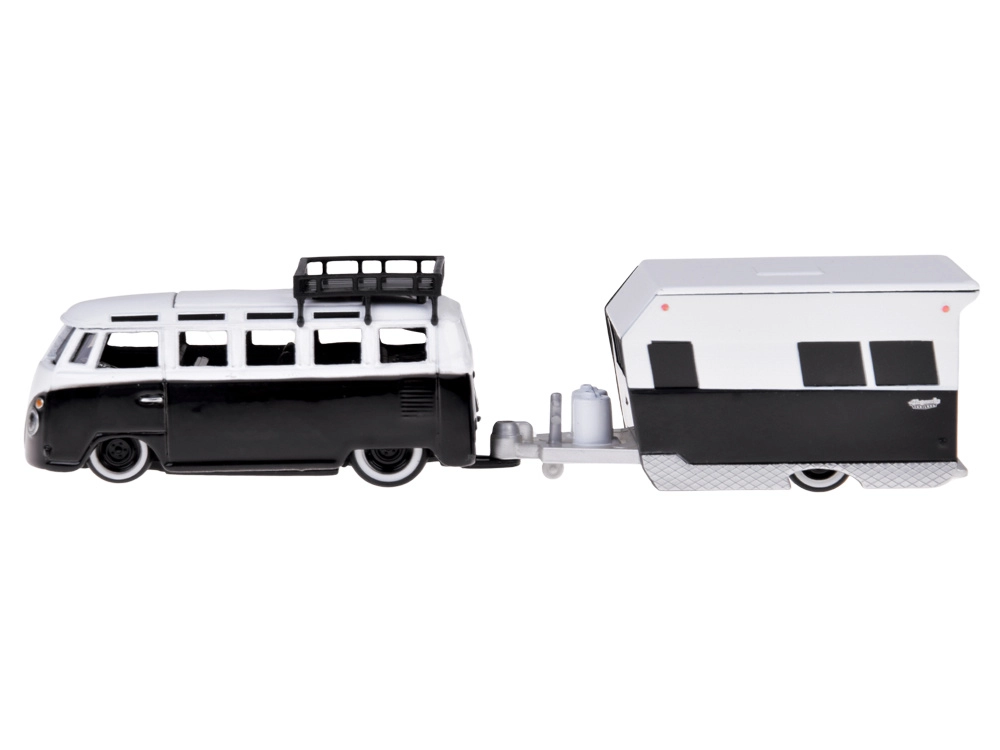 Modello in metallo Maisto VOLKSWAGEN Van Samba con caravan 1:64