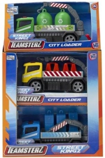 La collezione Teamsterz City Loader offre quattro modelli realistici di veicoli da lavoro nei colori rosso, giallo, blu e verde. Ogni veicolo dispone di un braccio funzionale con gancio o pinza per un facile carico e scarico. I bambini potranno divertirsi con un gioco autentico in cantiere o durante la raccolta differenziata, personalizzando gli scenari secondo la propria fantasia.