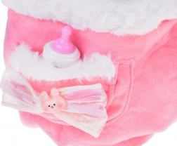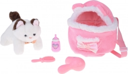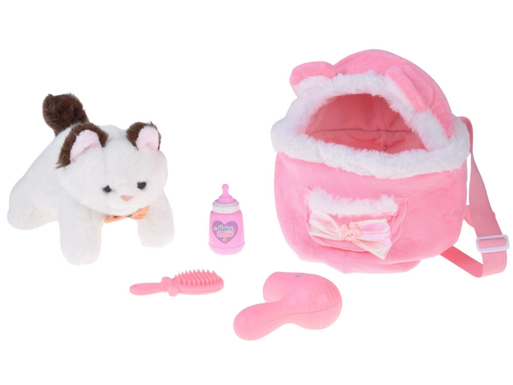 Delizioso set per piccoli caregiver: morbido gattino bianco con orecchiette marroni e fiocchetto, zainetto di peluche rosa e accessori per la cura. Il gattino ha zampe flessibili per un facile posizionamento, nel pancino un modulo con effetto battito cardiaco per un gioco ancora più realistico e nella confezione trovi anche una bottiglietta, un pettine/pennellino e un phon. Lo zainetto ha spallacci regolabili e una taschina pratica per i piccoli oggetti.