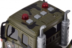 Questo set di trasporto militare dettagliato permette ai bambini di pianificare il trasferimento di mezzi, lo schieramento delle unità e operazioni di salvataggio. Il camion con semirimorchio separabile trasporta sia il carro che l’elicottero; la rampa posteriore facilita il carico. Luci e suoni sul tetto della cabina aggiungono tensione e atmosfera al gioco.